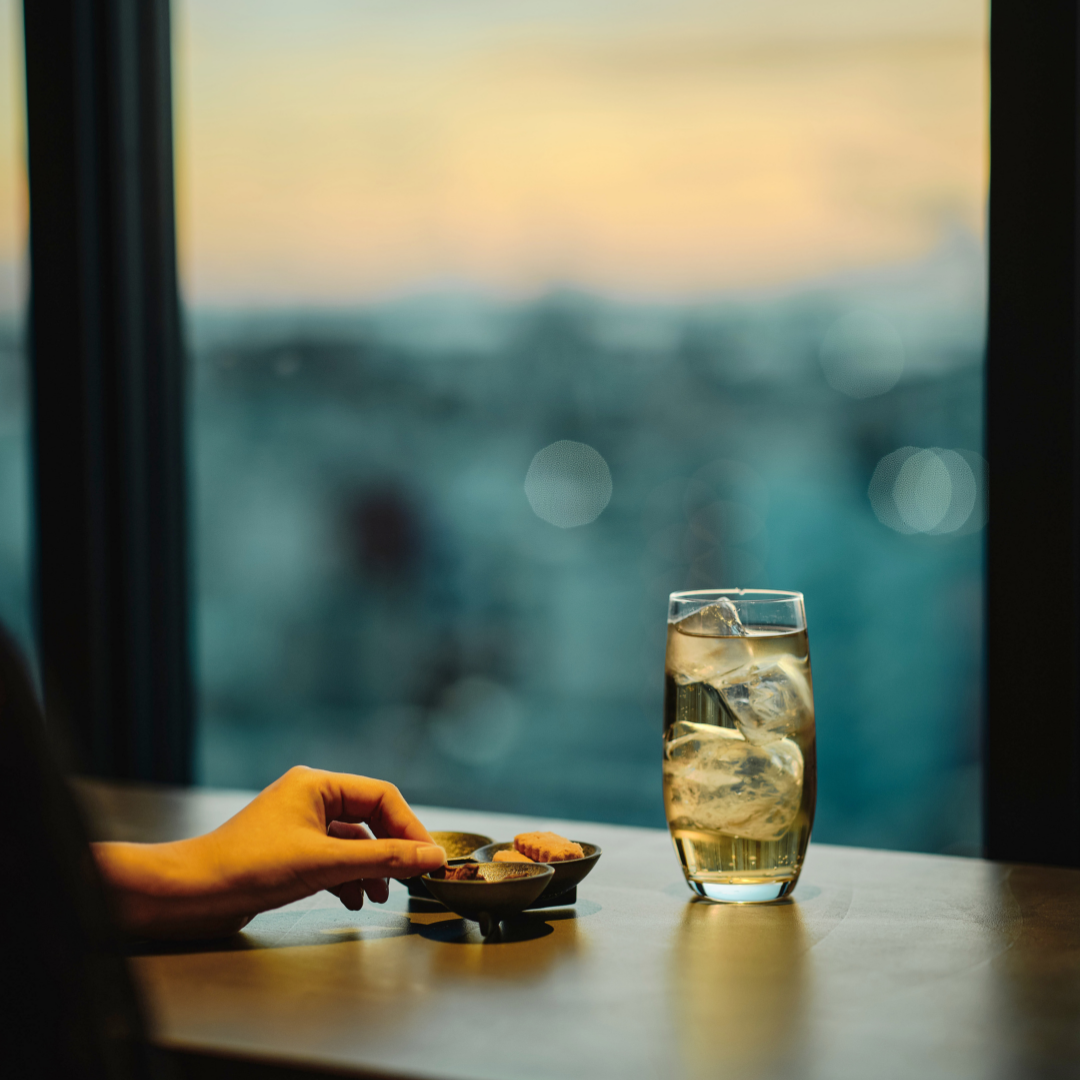 まるで空に届きそうなテラス、ドリンクを片手に眺める景色。