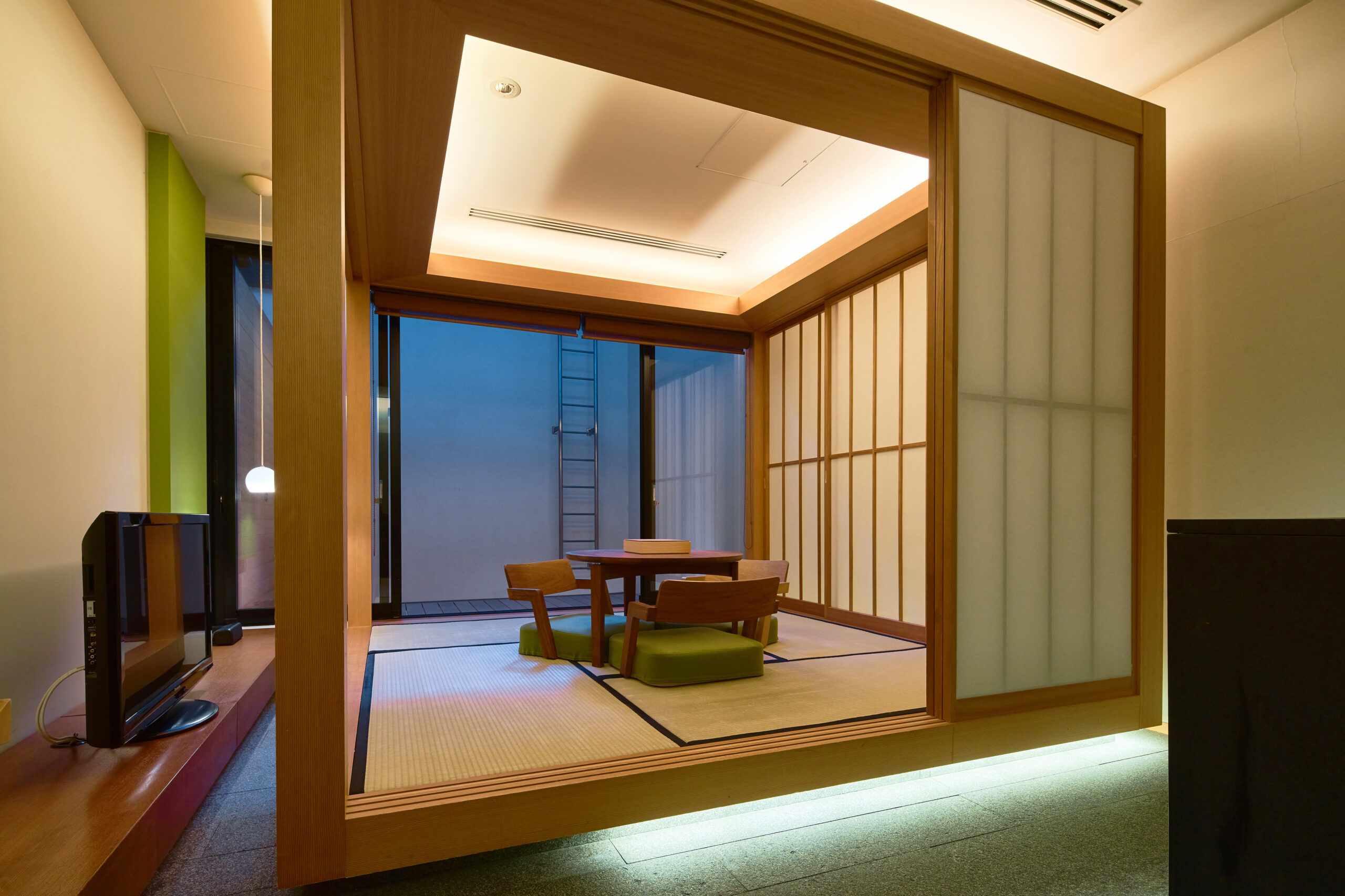 日本の素材と技術を生かしたライフスタイルを提案するブランド「カギロイ」がプロデュースしたメゾネットタイプの客室です。客室に入ると1階には寝室としてご利用お過ごし頂ける畳の間、階段から地下1階に降りた先のリビングスペースとしてご利用頂ける和室の奥には、縁側や庭園があり、和の風情を心ゆくまで堪能できる空間となっております。