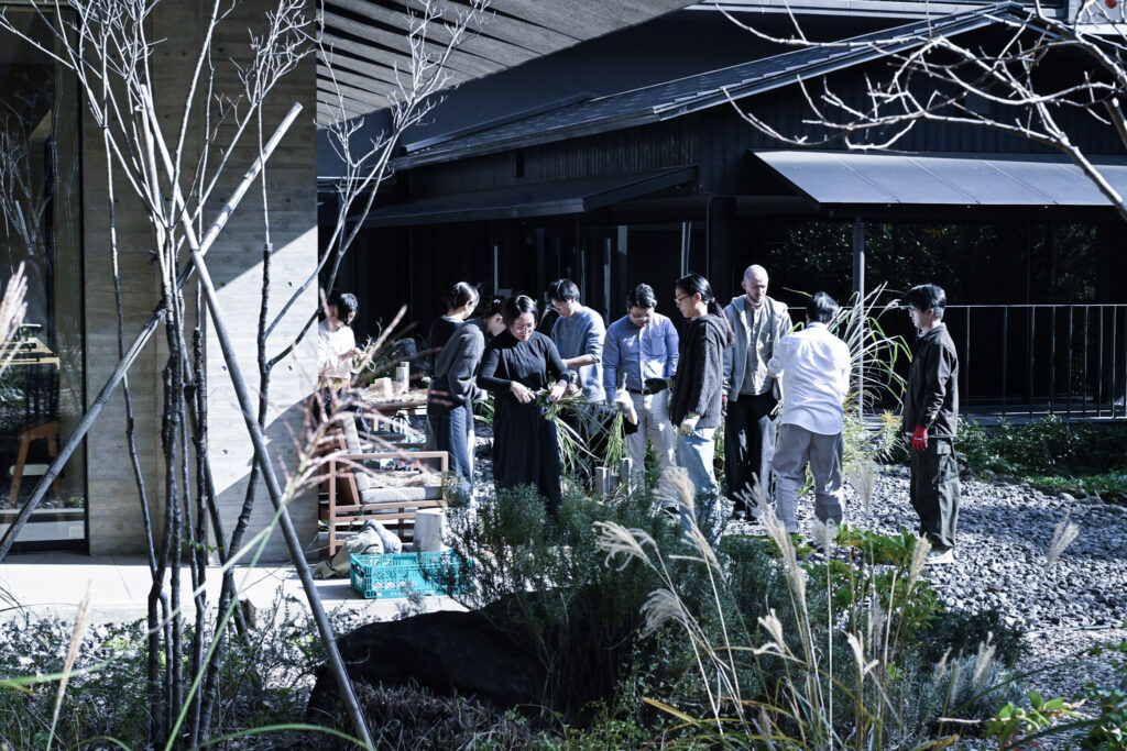 スタッフみんなでお正月の準備をします。普段の仕事とは違い、自然の中での作業は心も解放される時間となります。
