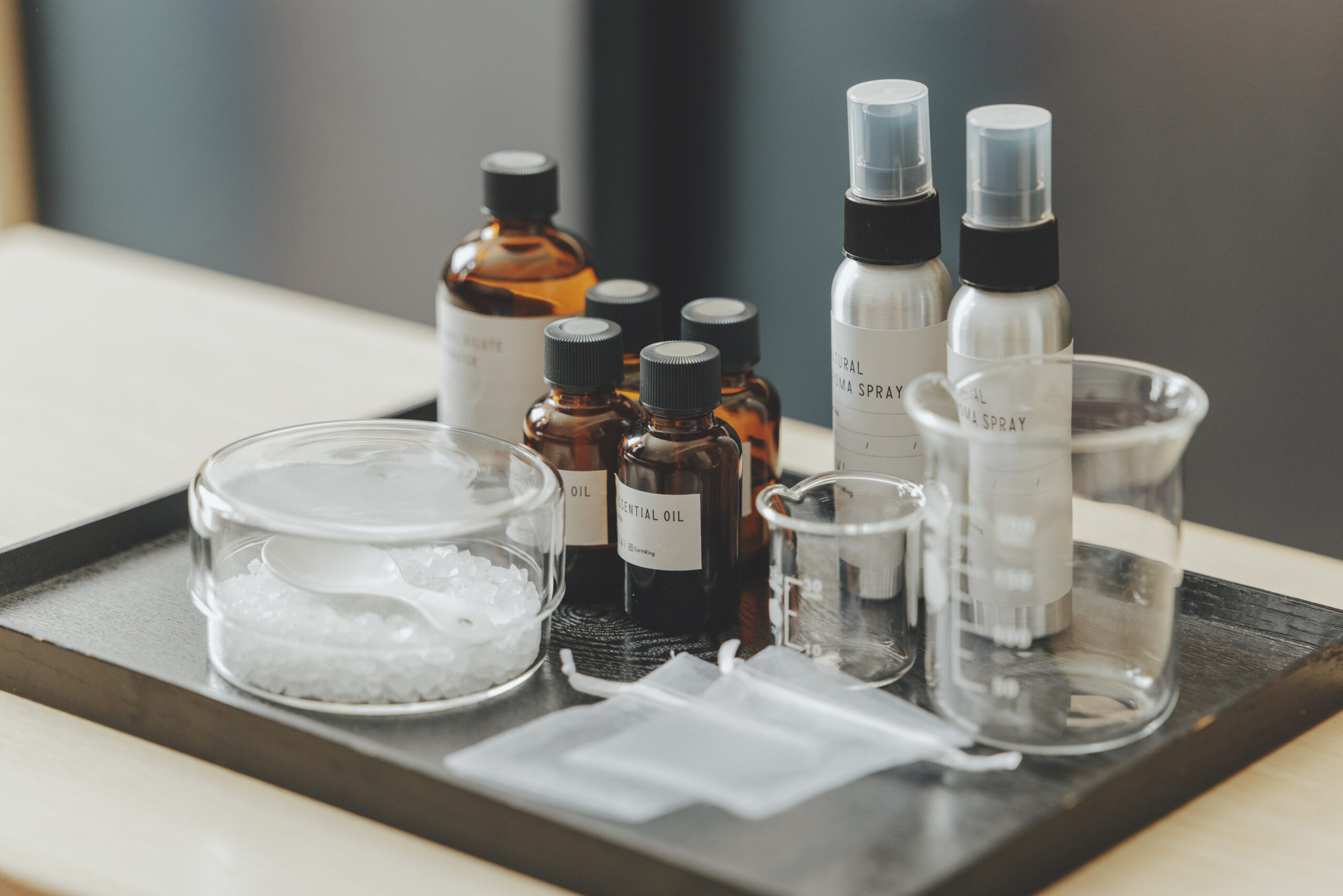 お持ち帰り可能なバスソルトやルームスプレーを