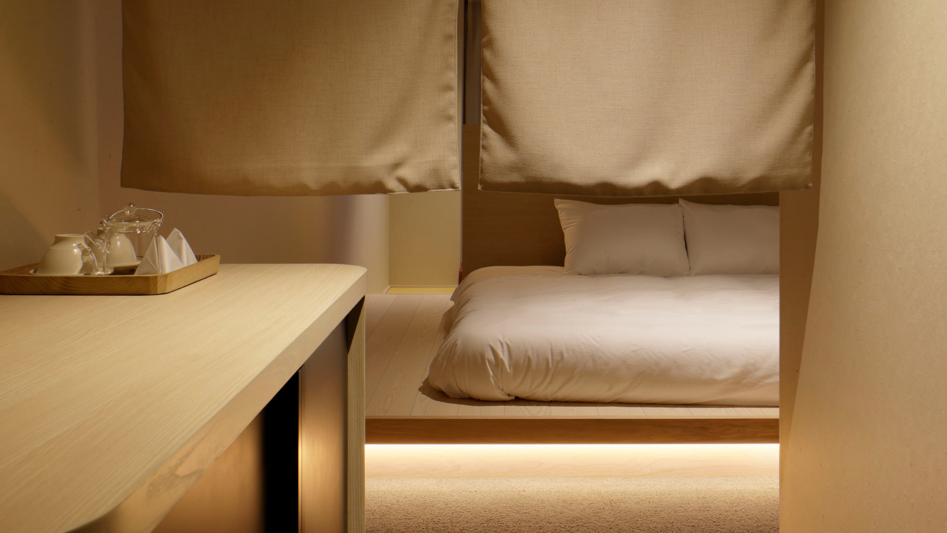 暖簾をくぐった先には、小上がりのキングベッド。