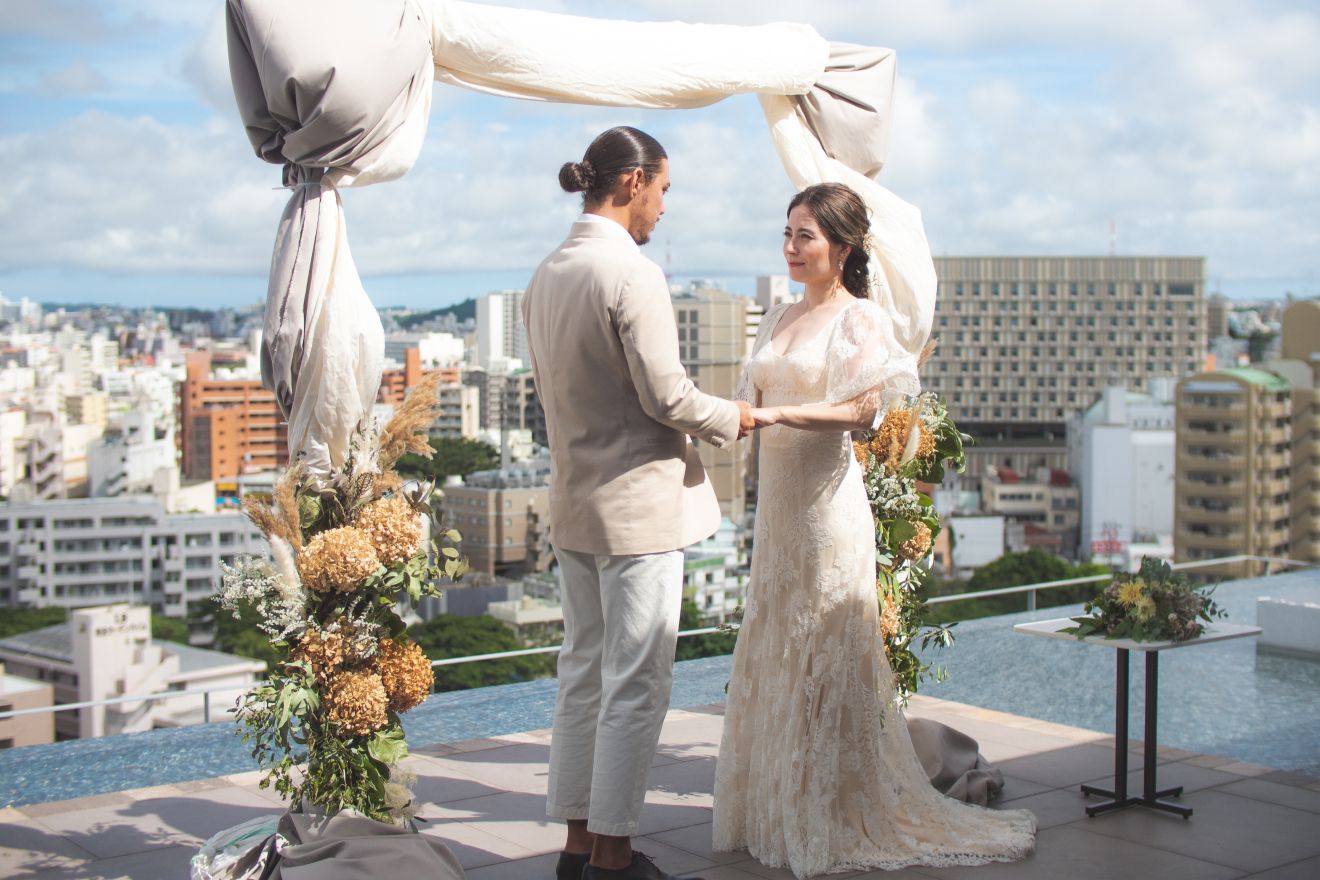 ホテル ストレータ 那覇が贈るウエディング挙式。那覇都市モノレールから徒歩30秒の好立地にありながら、都心の喧騒を忘れる豊かな緑に囲まれた、アーバンリゾートウエディングが叶います。ガーデン、ルーフトップラウンジ、レストランなど会場の多様性も魅力です。