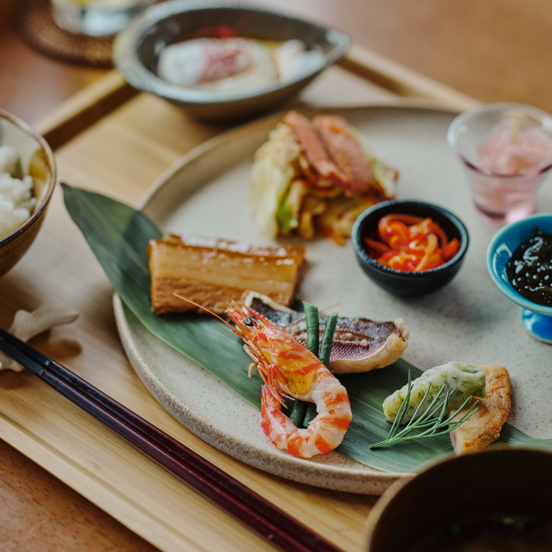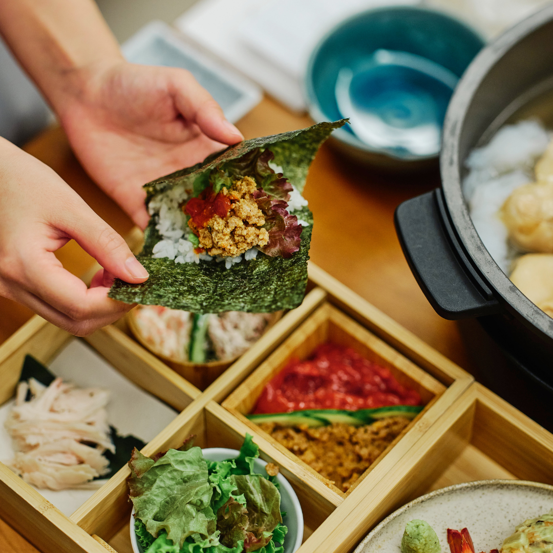 沖縄らしい食材を用いた手巻き寿司と島おでんと共に、