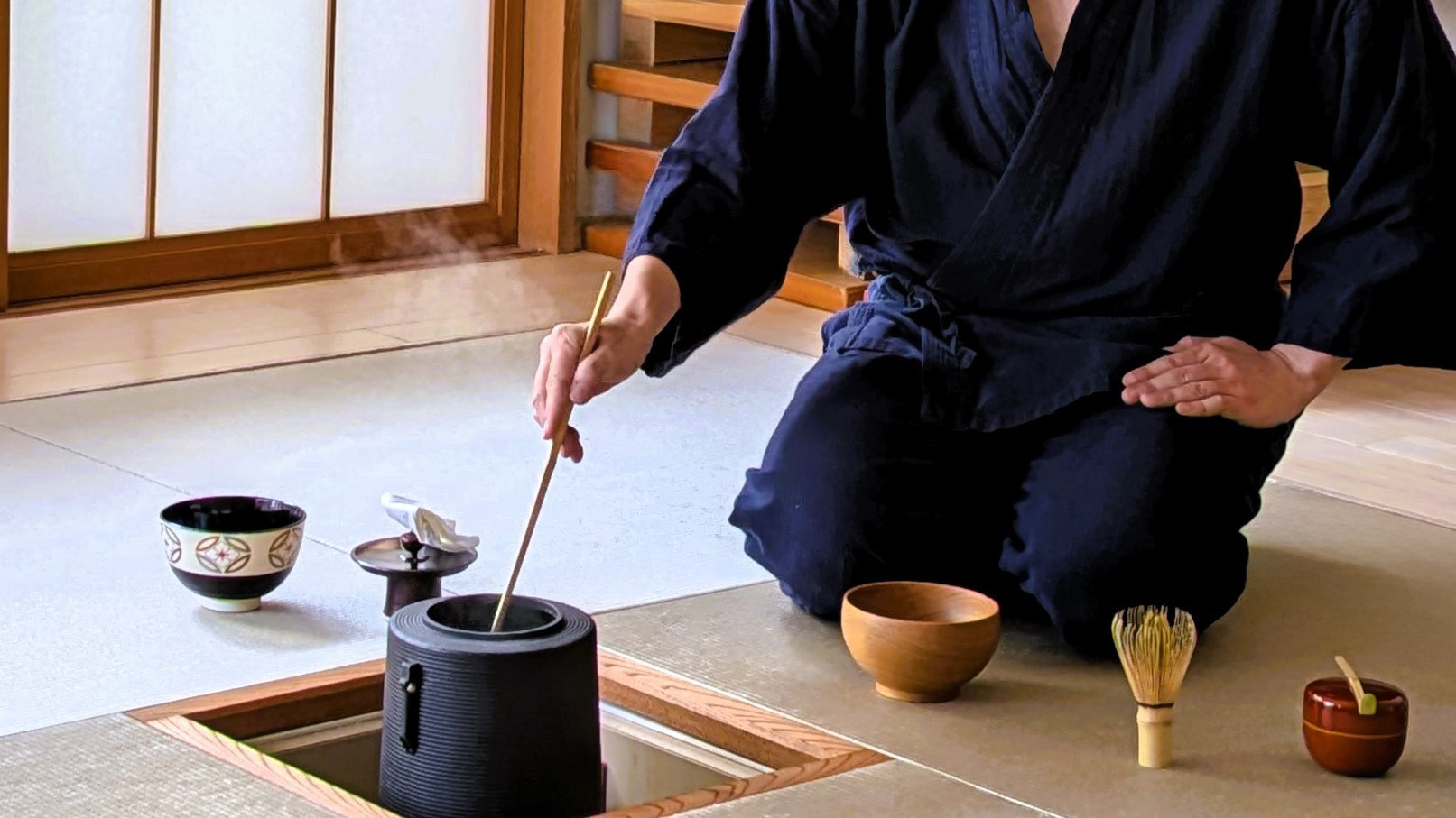 日本ならではの和室空間という静けさのなかで、茶の香りと味を感じながら、